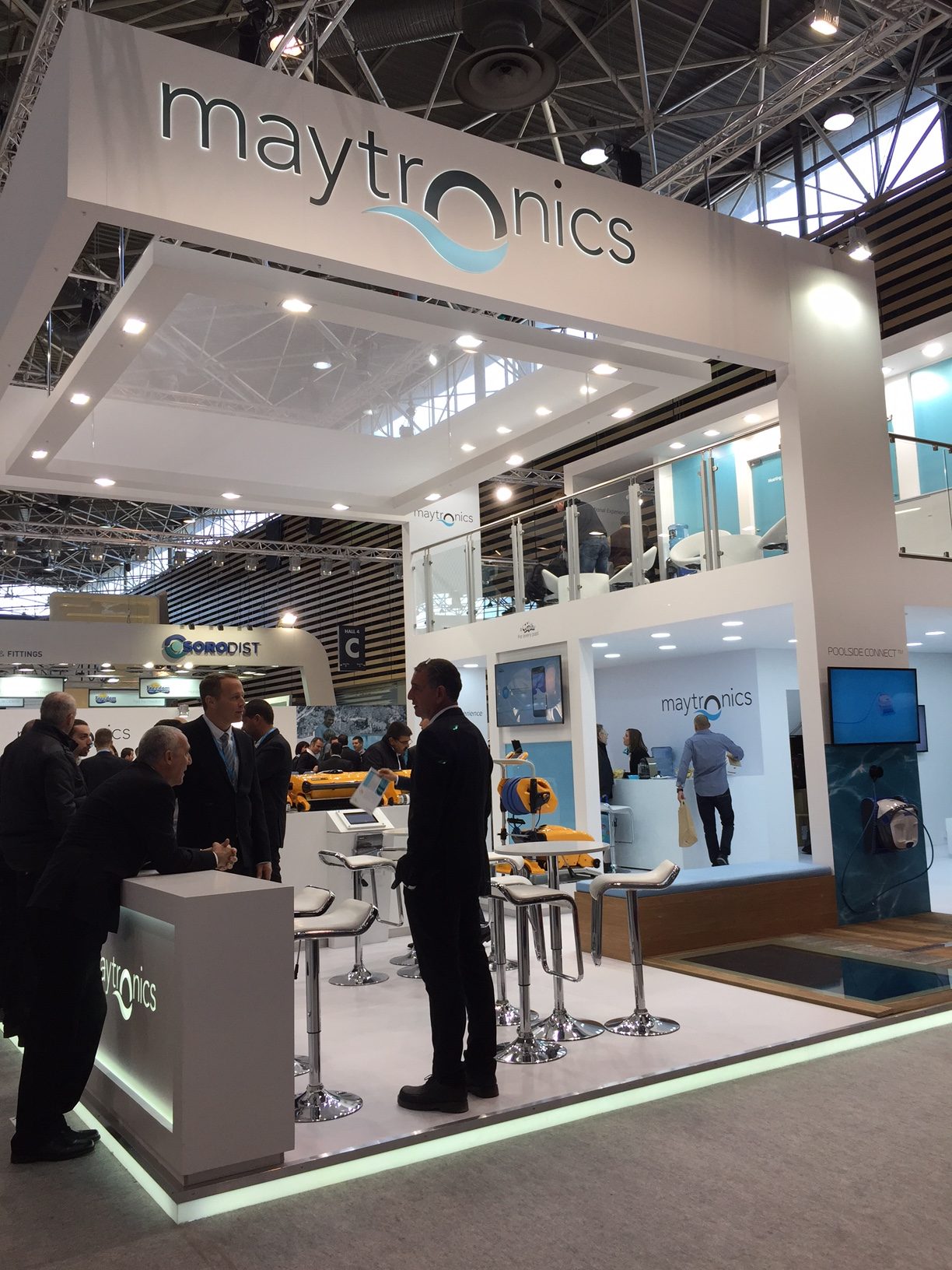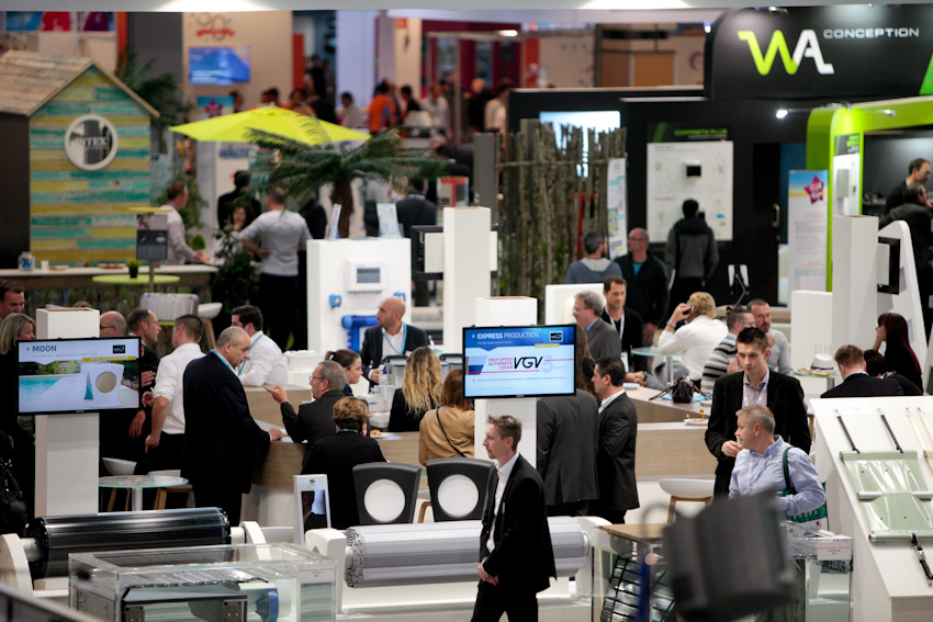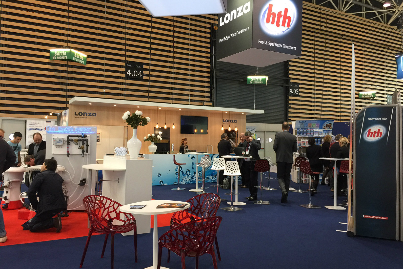 Pool and Spa News was an exhibitor, and when we arrived at the expo hall, I was struck by how elaborate and stylish the booths were. Most companies not only chose to have large sprawling spaces, but also built their booths high, to tower over attendees’ heads. It was apparent that Europeans took booth design seriously.