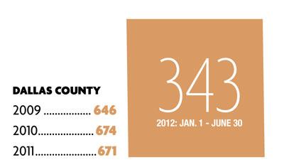 Bexar County is home to San Antonio; Harris County contains Houston; Tarrant County has Fort Worth. Three of four counties showed at least slight growth each year. But 2012 activity so far may be too low to sustain the previous rate of growth. Dallas stayed about the same from 2010 to 2011 and seems on track this year.