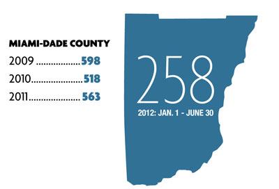 These four Florida counties showed the most activity in the state. Hillsborough County houses Tampa; Lee County contains Fort Myers and Cape Coral. All but Miami-Dade showed gradual improvement year to year. Unless activity picks up in Q3 and 4, permit counts may go down for 2012 in some of these counties.