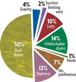 Most others would agree: More than 50 percent of builders and techs rated dual drains as the most effective type of safety equipment, beating out all other choices by far.