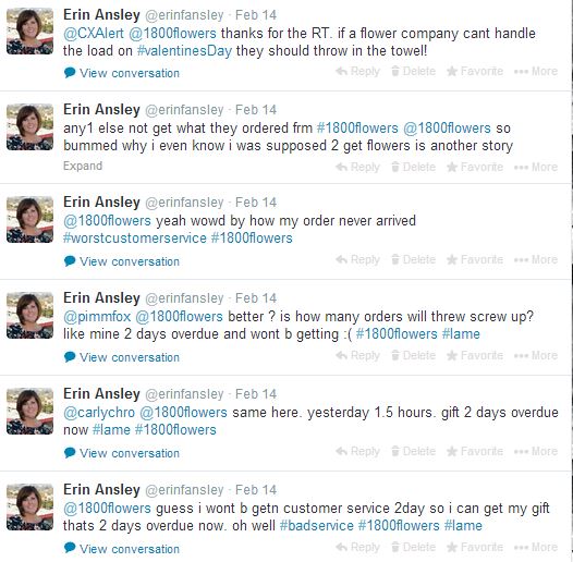 Twitter serves as a very powerful tool that not only facilitated a response from 1-800-Flowers, but provided a platform for me to vent my frustrations and have my voice be heard. I understand that Valentine’s Day is the busiest of the year for 1-800-Flowers. Yet, the company stayed abreast of its Twitter account when its phone lines were jammed. In the end, using the tool allowed the company to address a very dissatisfied customer and resolve an issue in a fairly expedient manner.