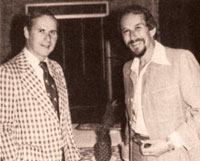 Joel Caesar (right), who later became NESPA’s guiding force, chatted with Spartan President Jerry Lansky in 1977.
