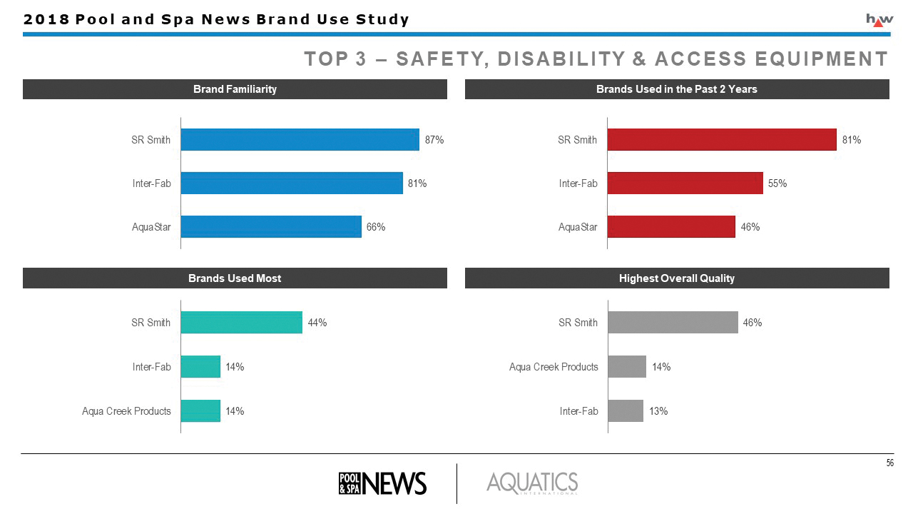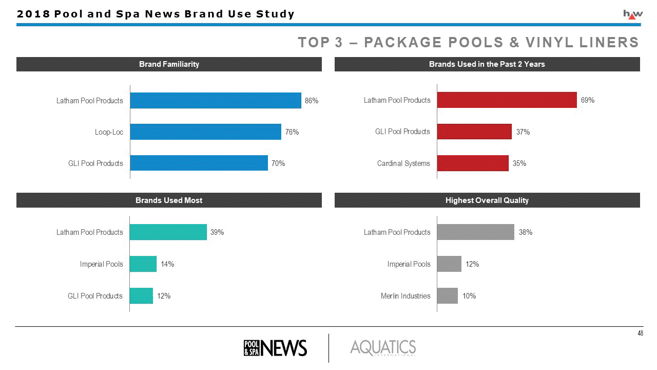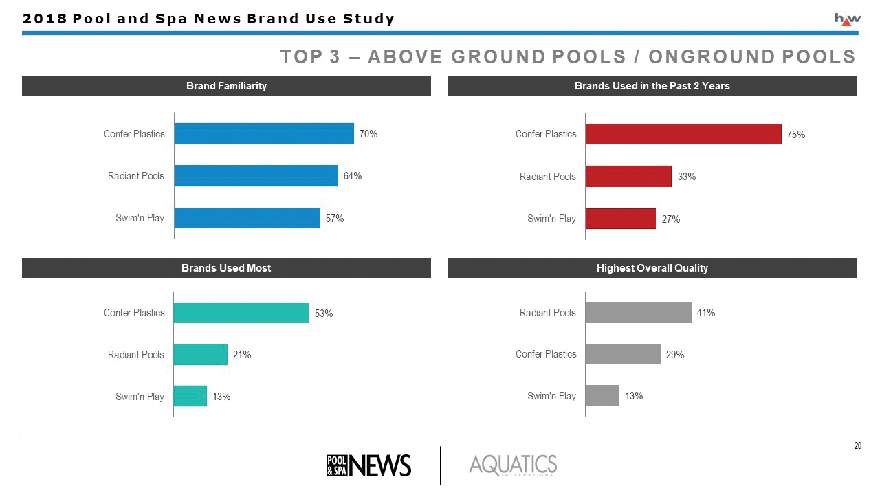 In this installment, we cover the inground and aboveground pool-related brands used most and perceived as having the highest quality. For more results in these categories, see our online coverage.