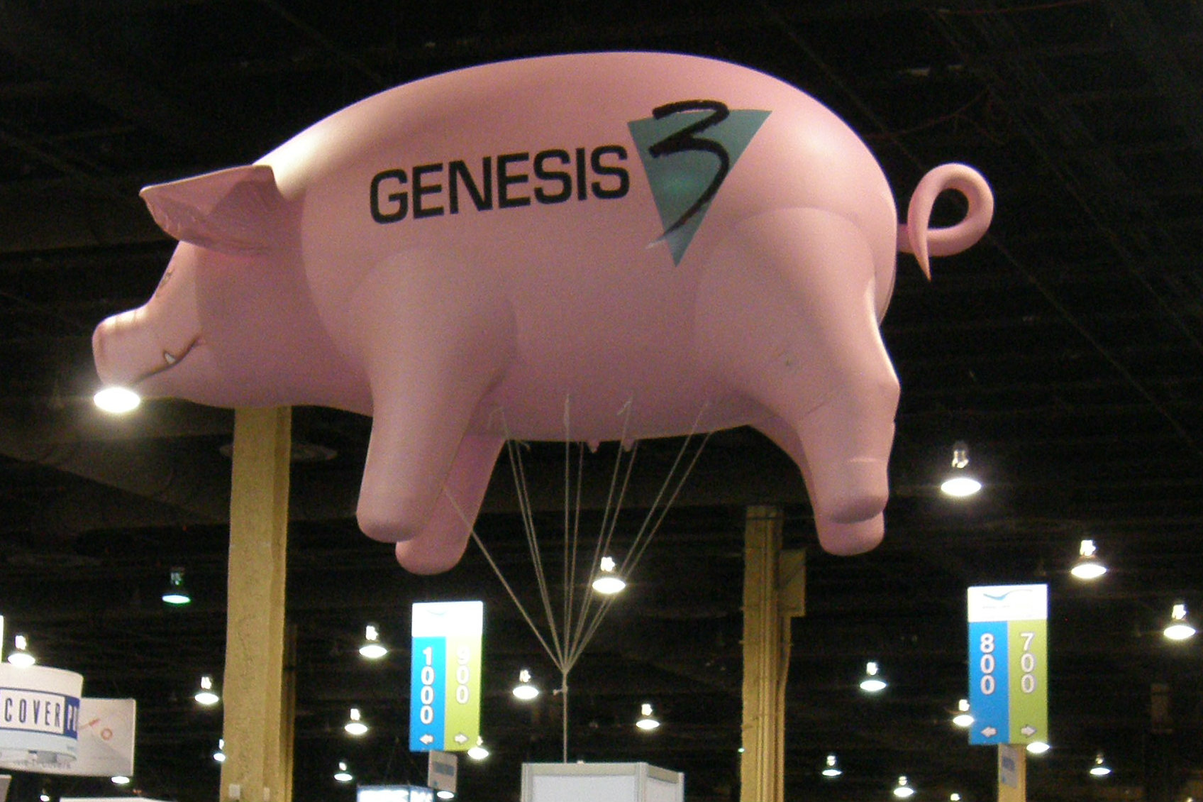 With the maturing of the group came the retiring of the floating pig that marked the Genesis pavilion. “Over time, that arrogant pig stuff, we really needed to get some distance,” Phillips says. “It’s fun to talk and joke about it. But making it prominent in an educational system [wasn’t appropriate anymore]. When it got a hole and collapsed, nobody replaced it.” (They still use pins and other swag showing the pigs, though.)