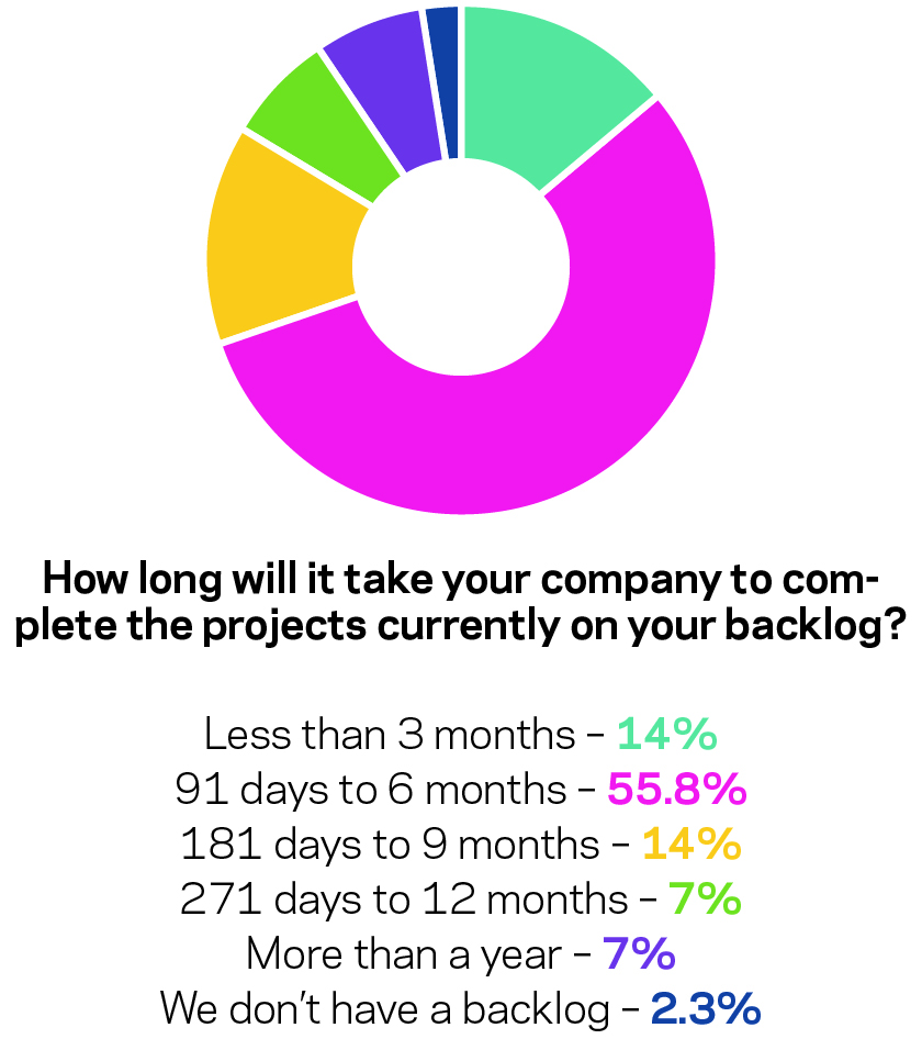 While year-long backlogs may have become less common, many of these builders remain busy, with more than half enjoying a backlog of three to six months.