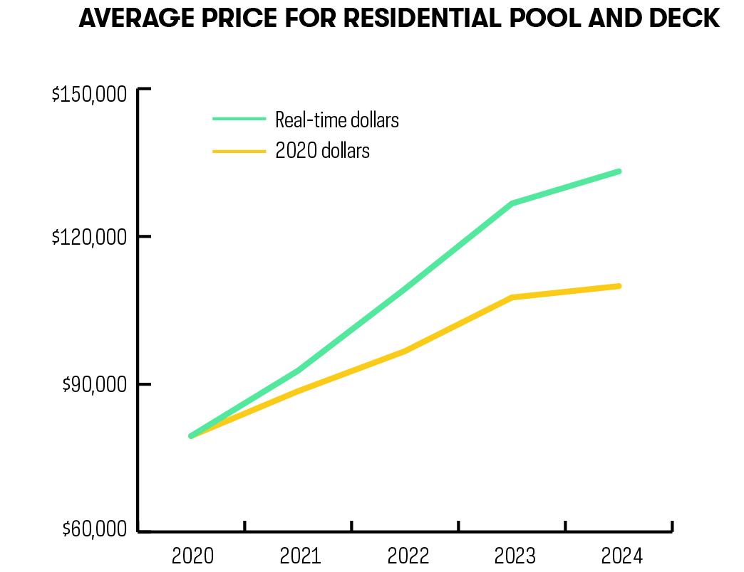 Volume and contract price also took opposing paths. Residential excavations dropped from 8,531 in 2021 to 5,356 last year. But average price for residential pools rose from $79,487 in 2020 to $109,915 last year, measured in 2020 dollars. In real-time dollars, last year’s average price was $133,221.