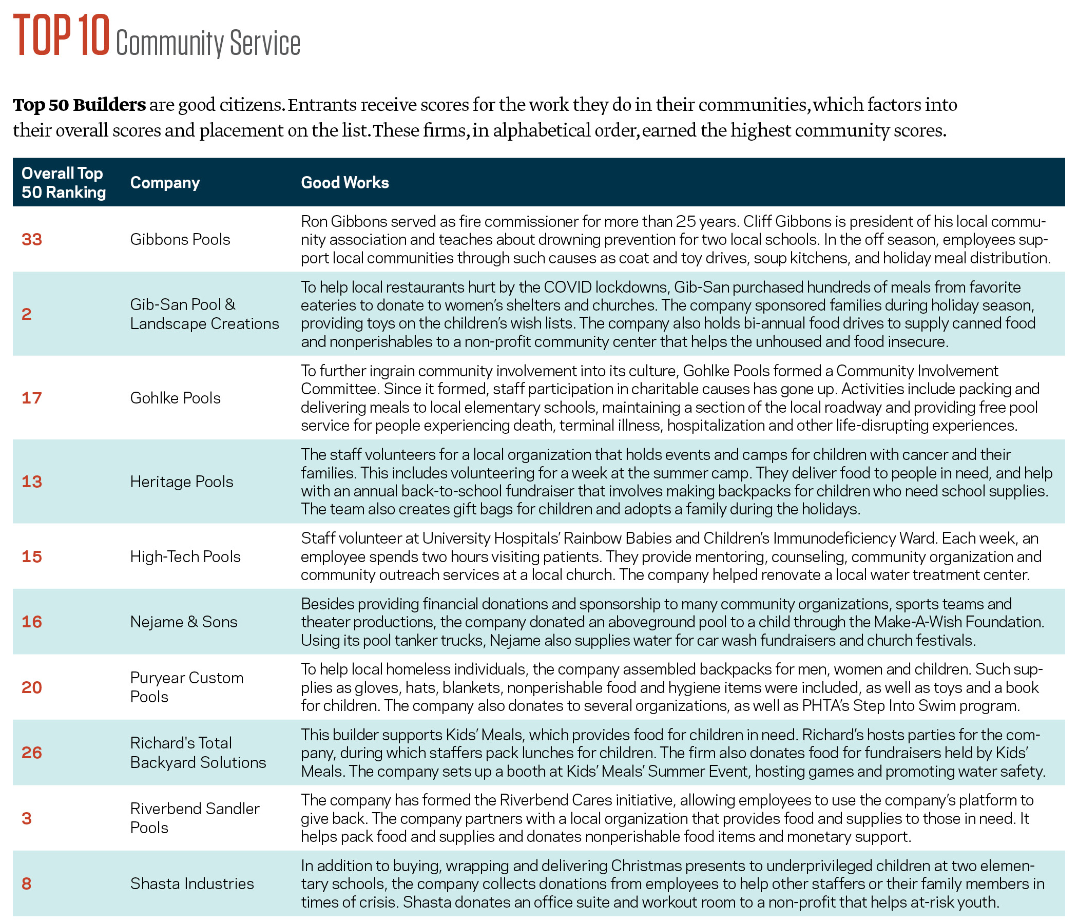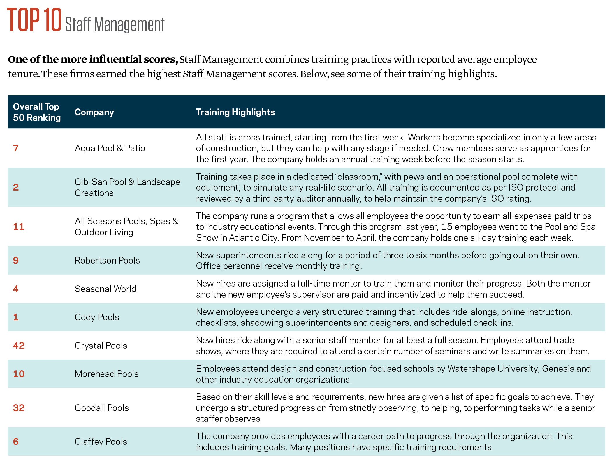 Below, see who ranked the highest in many of those categories, as well as a regional breakdown of this year’s Top 50 Builders. We call out those who have instituted the best training practices, are the biggest employers, generated the most revenue, build the most high-end installations, and showed the most impressive community service, among others.