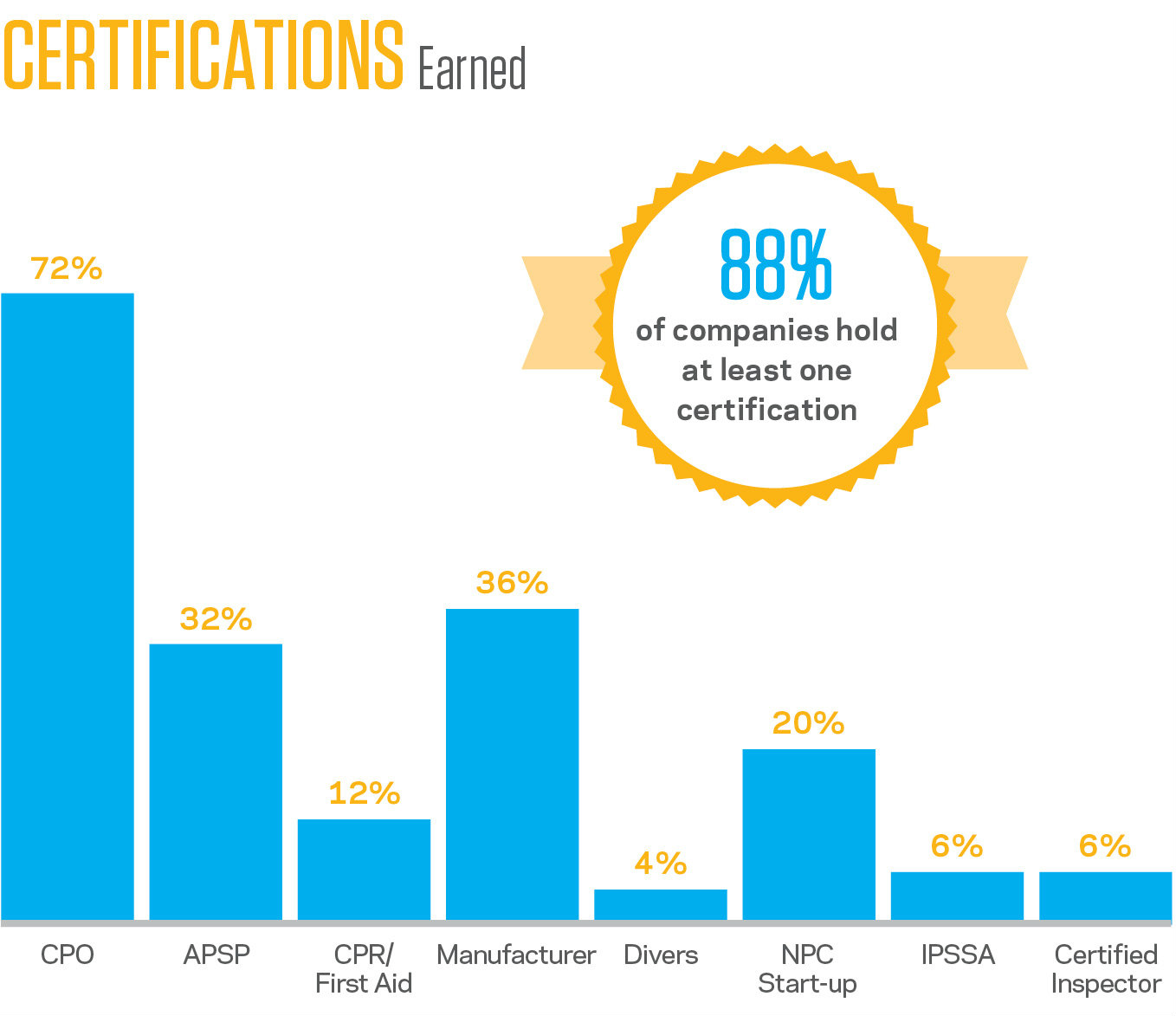 Employee training made up one part of the staff management category. When evaluating this important component, we looked at internal and external training, along with certifications. Here, we see the percentage of Top 50 Service firms that carry each listed certification.