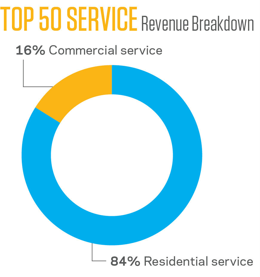 While residential work dominates for Top 50 Service firms, commercial accounts still generated a notable 16% of revenue.