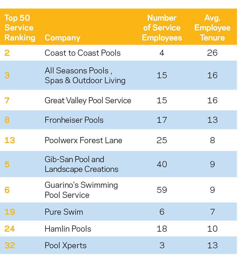 In choosing our Top 50 Service companies, we considered judged on six categories — revenue, staff management, industry involvement, customer service, web presence and community involvement. Here, we see the companies that made top showings in two of the more heavily weighted categories — revenue and staff management.