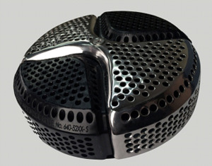The black and silver, round-shaped drains are stamped with the number 640-52XX S on the outside edge of the plastic.