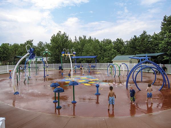 For those spraypads with multiple water toys, designers should space and zone the elements to segregate children of different ages and engagement levels. “If you’ve got 8-, 9-, 10-year olds playing under their play features, you don’t want to have toddlers under their feet, because they won’t pay attention and they’ll run flat over [the toddlers],” Brannon says.