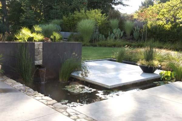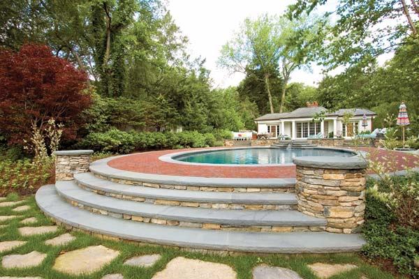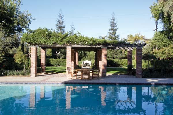 The pool was centered to the back door of the home, so Bartell used that orientation to organize the space.
