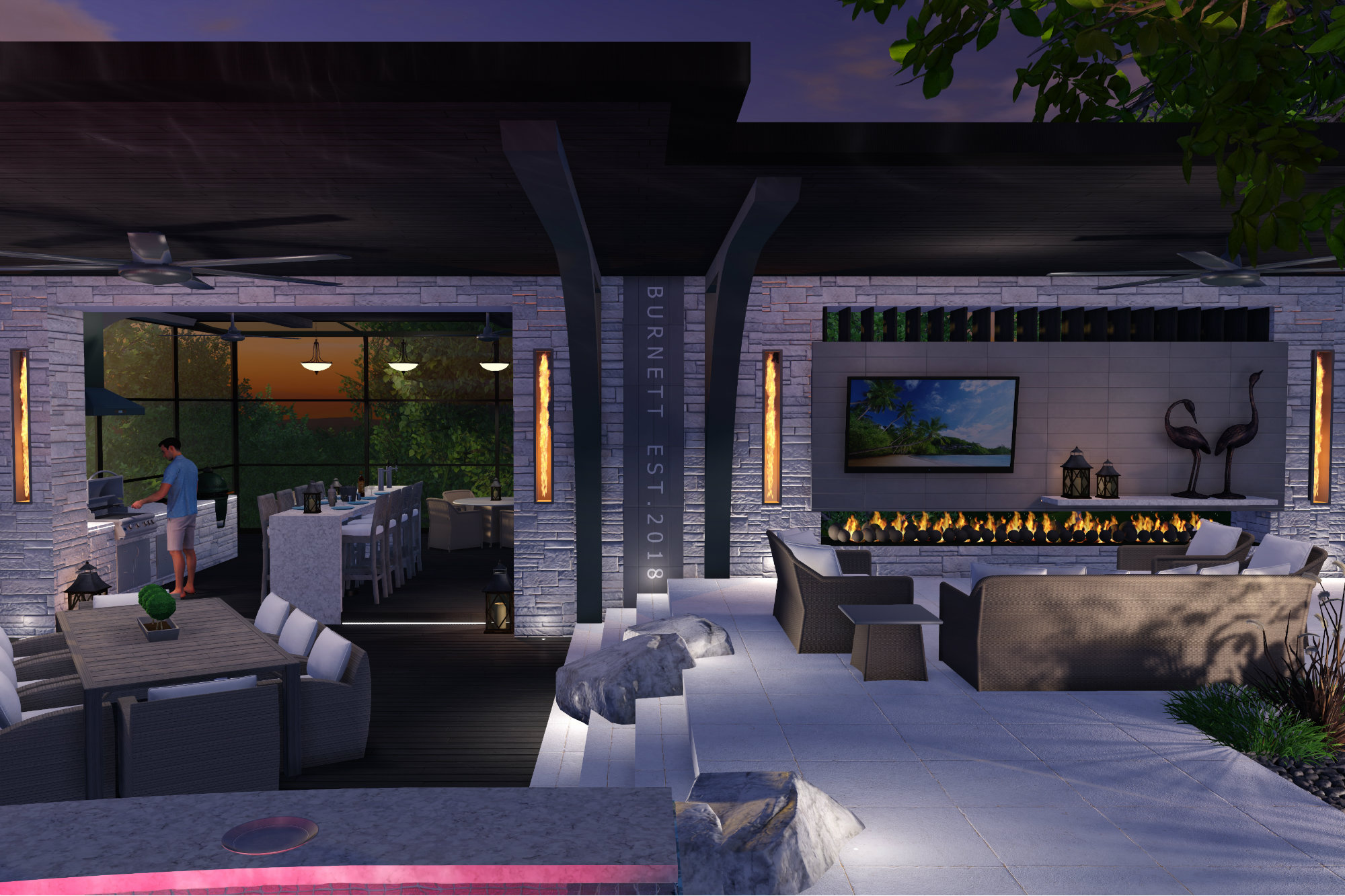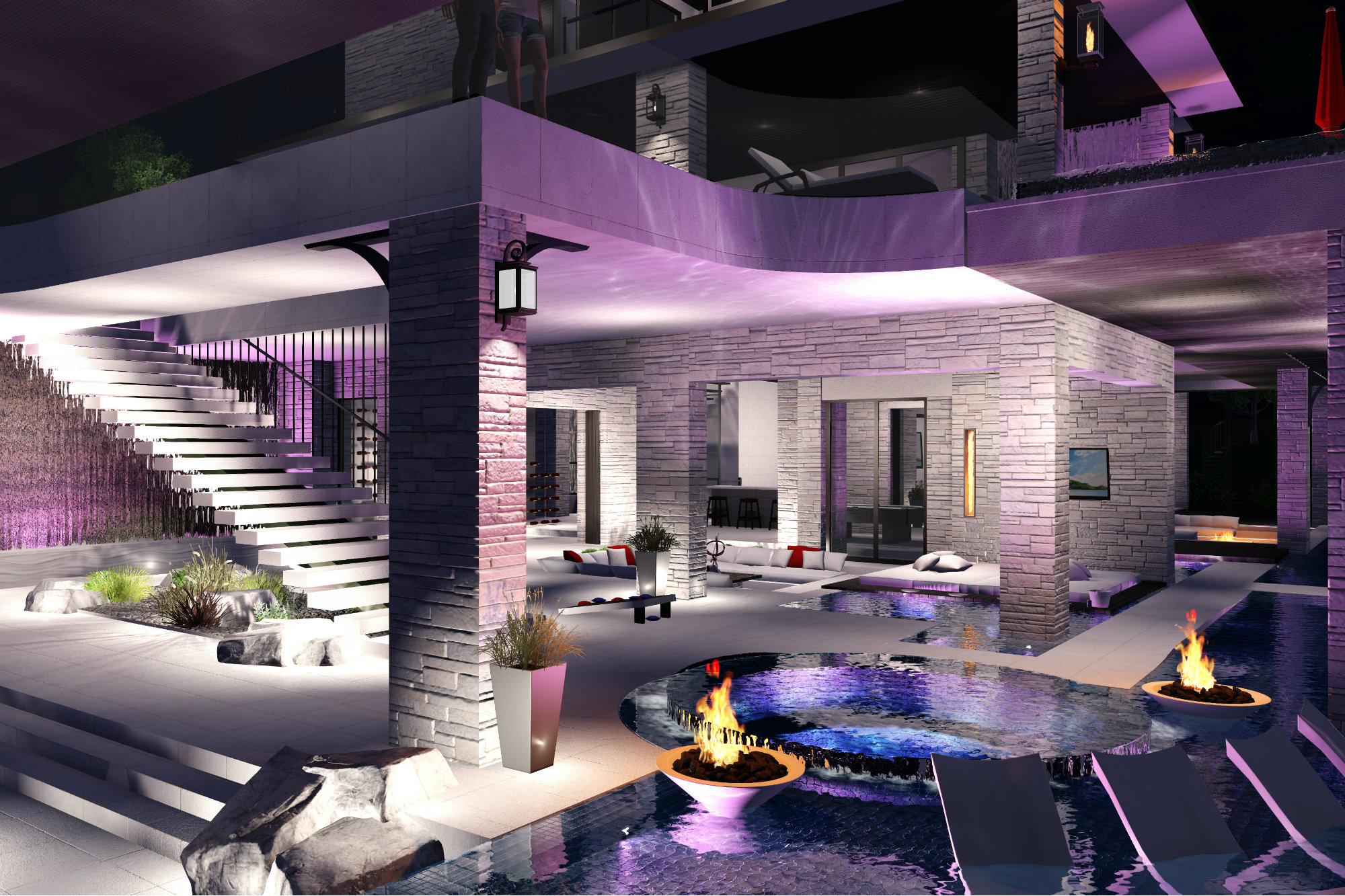 This year’s final winner: Tanr Ross, a designer and part owner of Las Vegas-based Poolscapes. His multi-level creation blended with the clean lines of the home while injecting some curves in key spots for the husband. All features are integrated as part of the home.