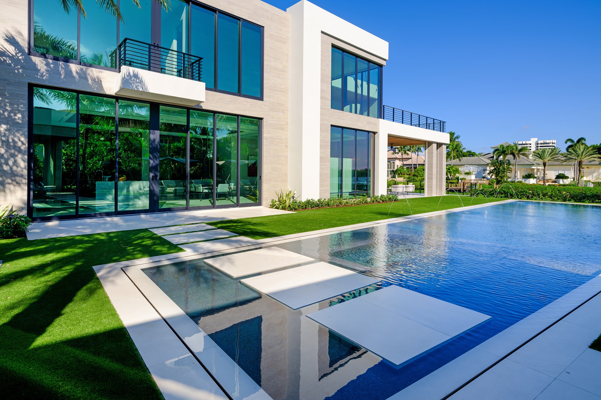Architect Benjamin Schreier of Affiniti Architects in Boca Raton, Fla., gave this home its unquestionably modern styling, with strong lines, light materials and glass walls. He provided a rough sketch of a long, narrow pool centered on the main room and jutting out toward the view of the Waterway to create an instant visual connection and sense of flow with the home.