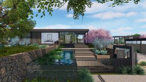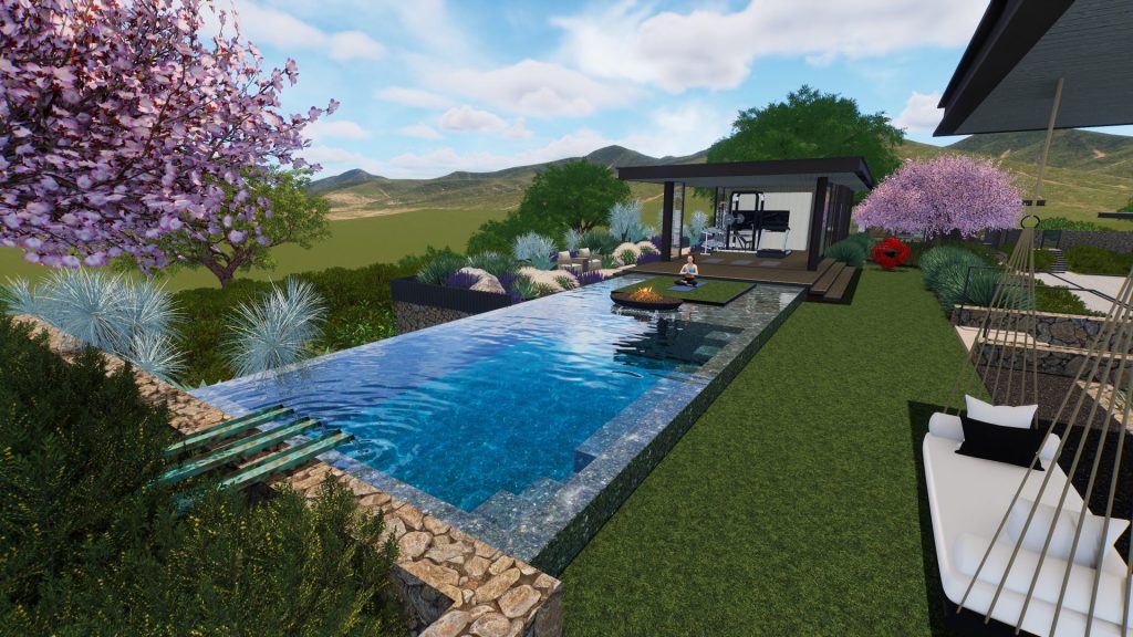 In designing this backyard, he drew off the vocabulary he saw displayed in the home architecture.
