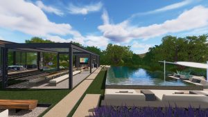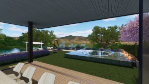This time around, entrants had to tailor their masterpieces to reconcile the wife’s preference for Palm Springs Mid Century Modern architecture with the husband’s bent toward Rocky Mountain rustic. Among required features were a recreational pool for the home; private spool, cold plunge and sauna off the master suite; spa for 10 to 12; swim-up bar; current for exercise; fire pit and specialty fire feature.