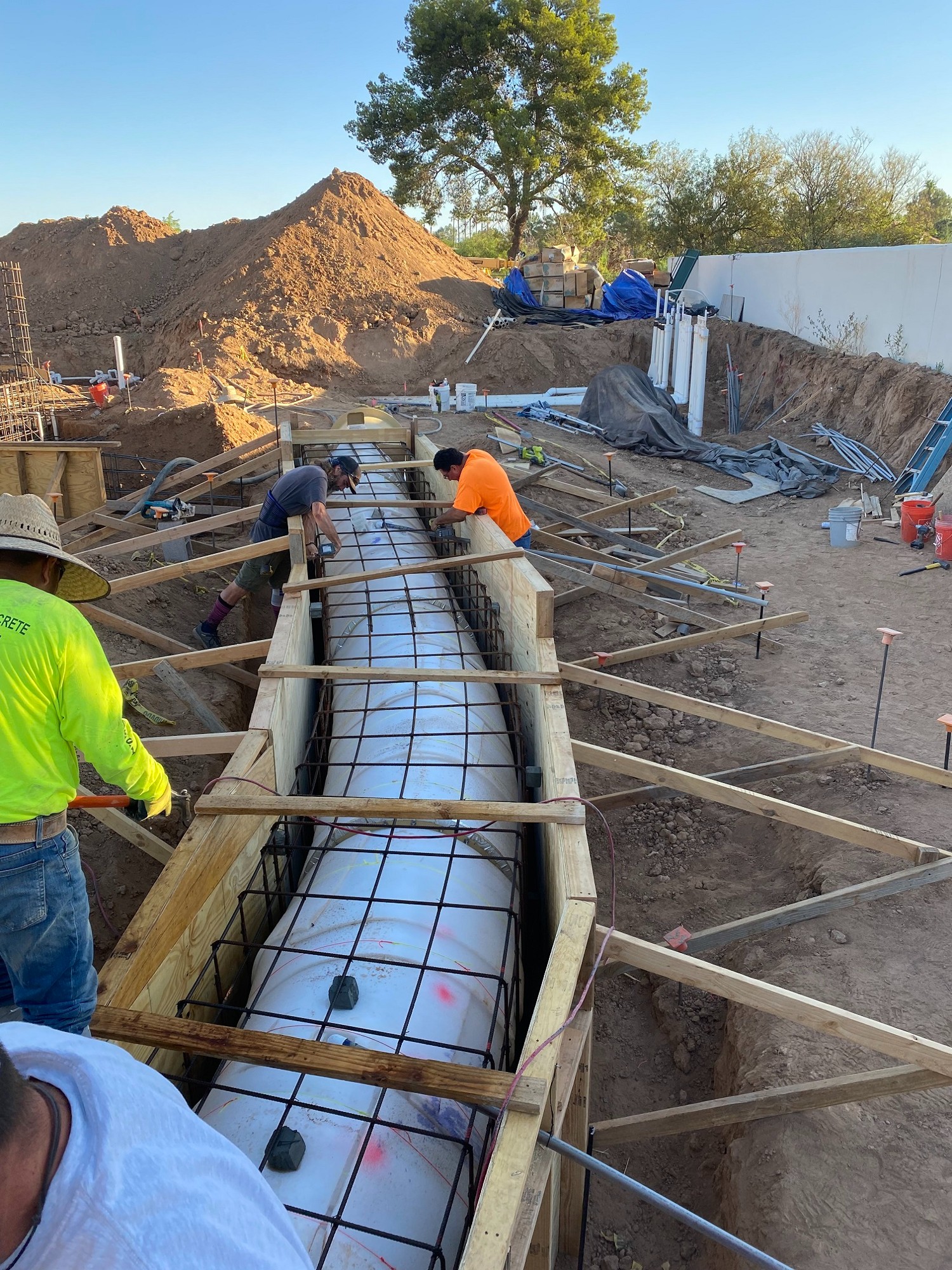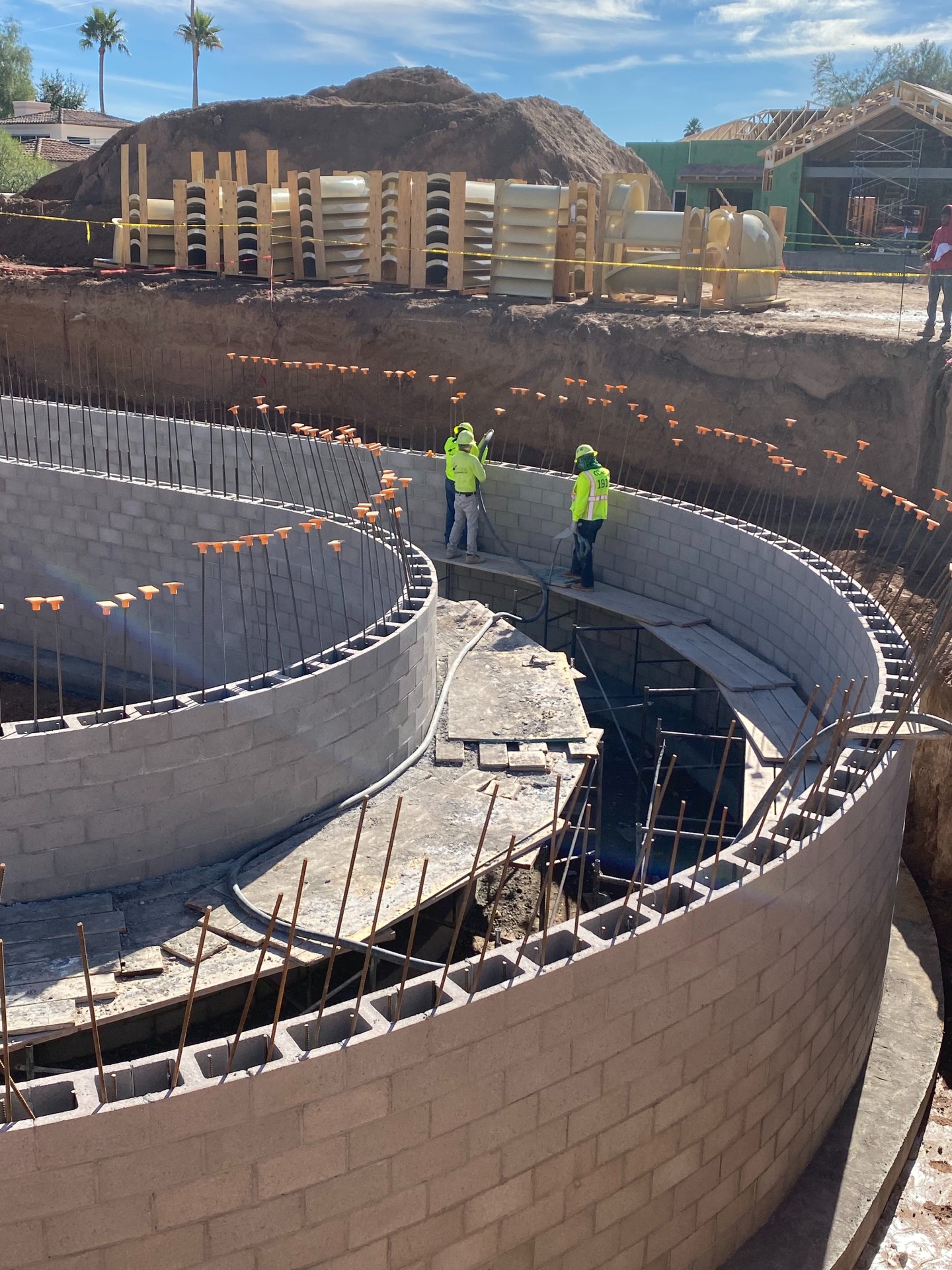 The sections where the tunnel and lazy river intersect will have 12 inches of concrete each for the river shell and the kart-path roof. This means we’ll have 24 inches of concrete anywhere the pool or river cross over the tunnel.