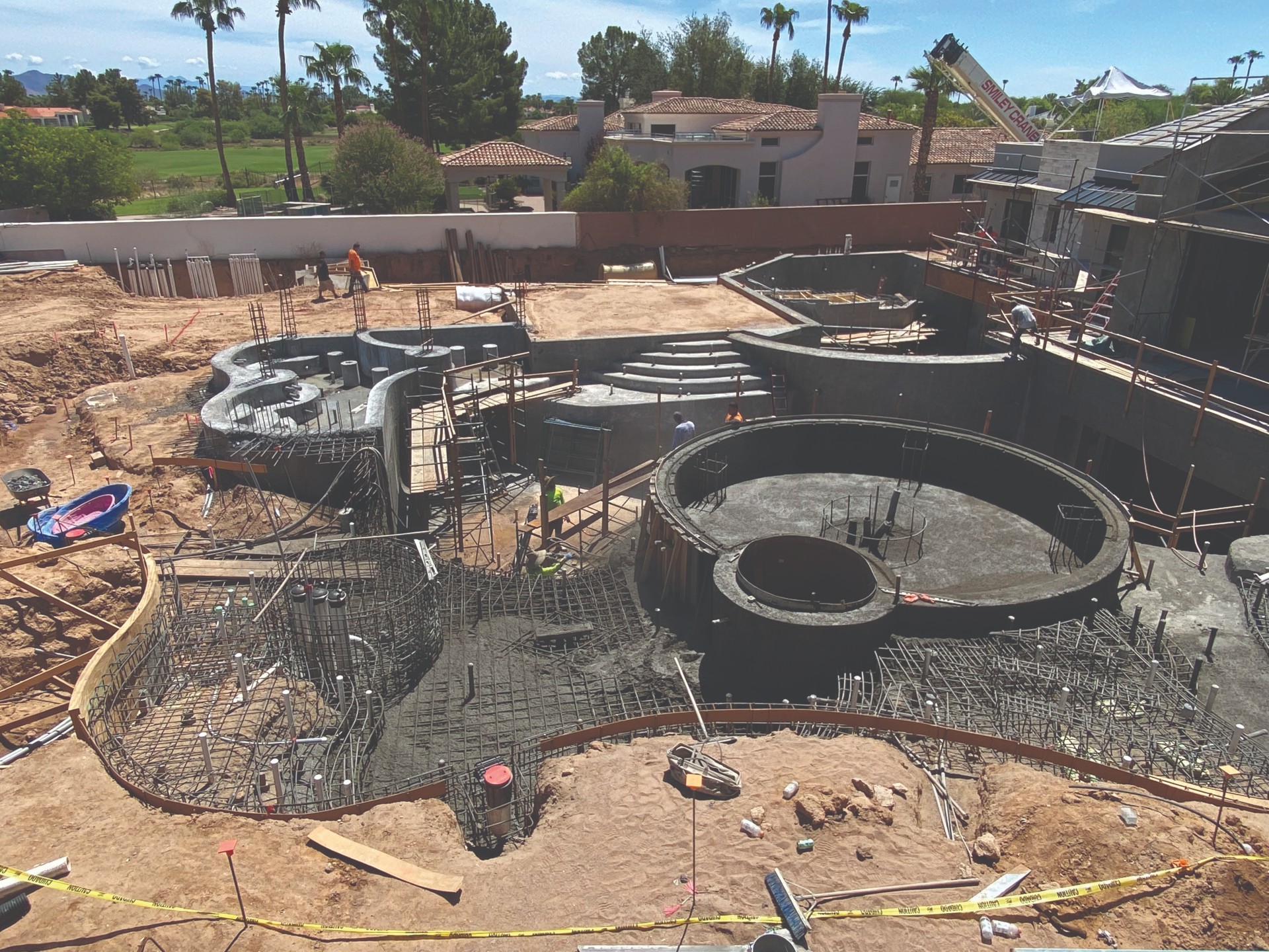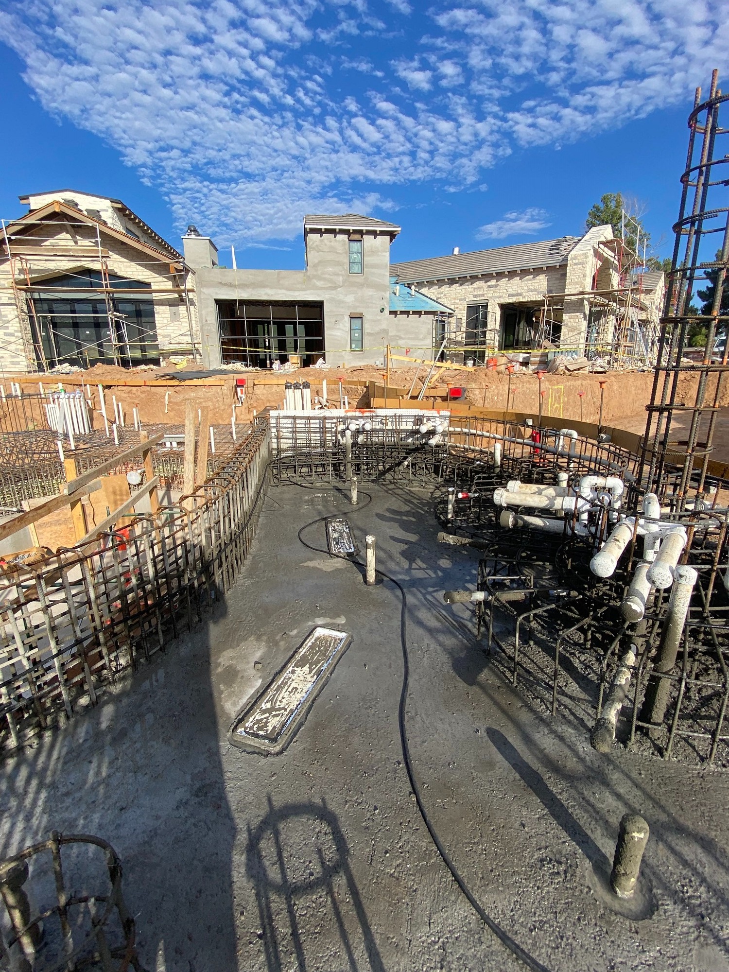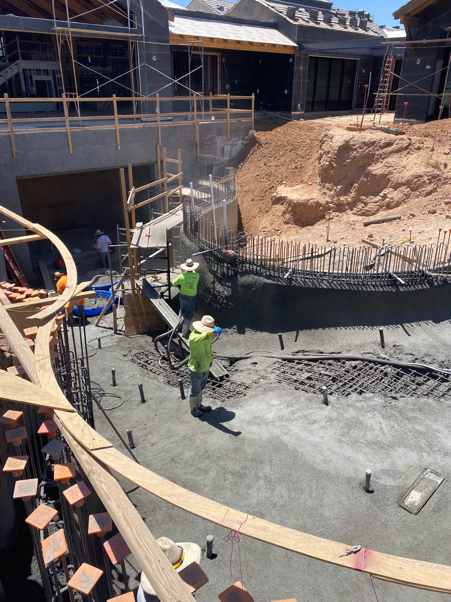 With all the different elevations and intricate work involved, these crews have had to perform a good portion of their work on scaffolding, and it’s involved plenty of form work as well, because a number of areas required over excavating. So it’s a different animal.