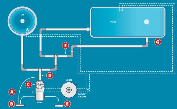 Safety vacuum release systems and automatic pump shut-offs vary in their placement within the circulation system, depending on the brand. Be sure to consult the manufacturer’s instructions to find proper locations, as well as wiring schematics, check-valve guidelines, calibration and test procedures, and other information to ensure the products work properly.