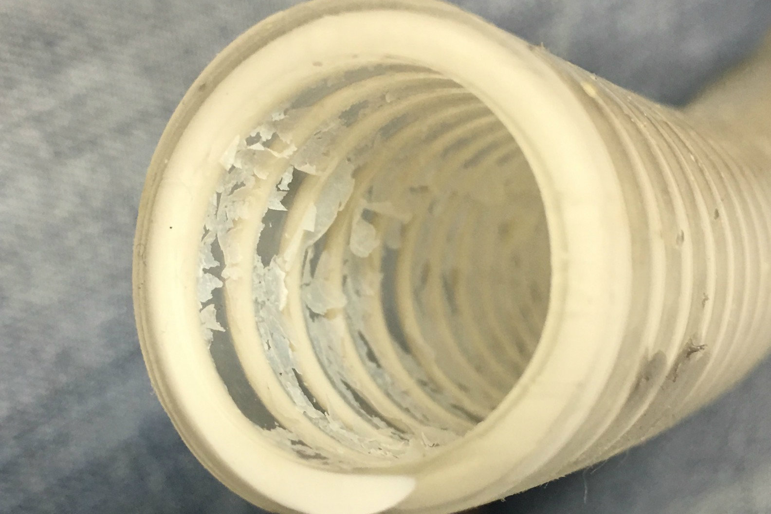 The cause of the corn flake water is calcium stearate, a lubricant manufacturers use to extrude the 1½-inch flex PVC pipe throughout the system, Sims says. Cutting out a section of pipe, he saw something that looked like “dried milk” inside, and the air tubes appeared foggy.