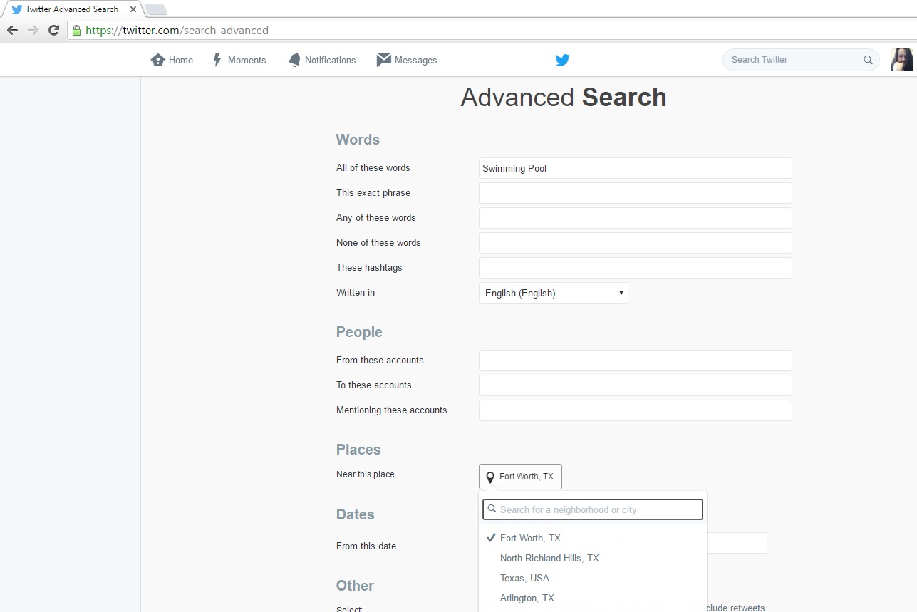 Use Twitter Advanced Search: To gain followers, you are going to have to follow people first. Unless you are Duane “The Rock” Johnson or Katy Perry, people aren’t just going to flock to you and follow! A great way to start is using Twitter Advanced Search to find people in your immediate area to interact with. It is also a way to find topics pertaining to your business by using specific word searches. Another helpful tip: If you use the advanced search and just narrow down the areas close by, then you will find accounts to follow. This will help increase your popularity regionally.