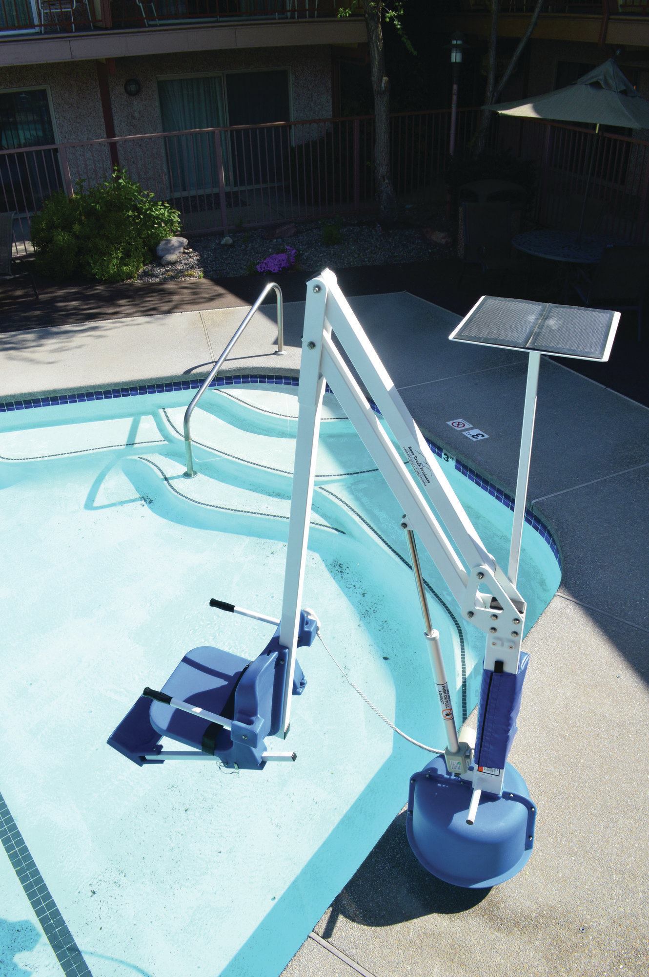 The Solar Charging Station by Aqua Creek Products is designed to save energy and labor, and provides a steady stream of low-voltage power for pool lift batteries. The charger is meant to extend the life of batteries and eliminate the need to remove the battery each night for charging. It works with the Ranger, Pathfinder, ProPool, Scout, Patriot, Revolution and Titan.