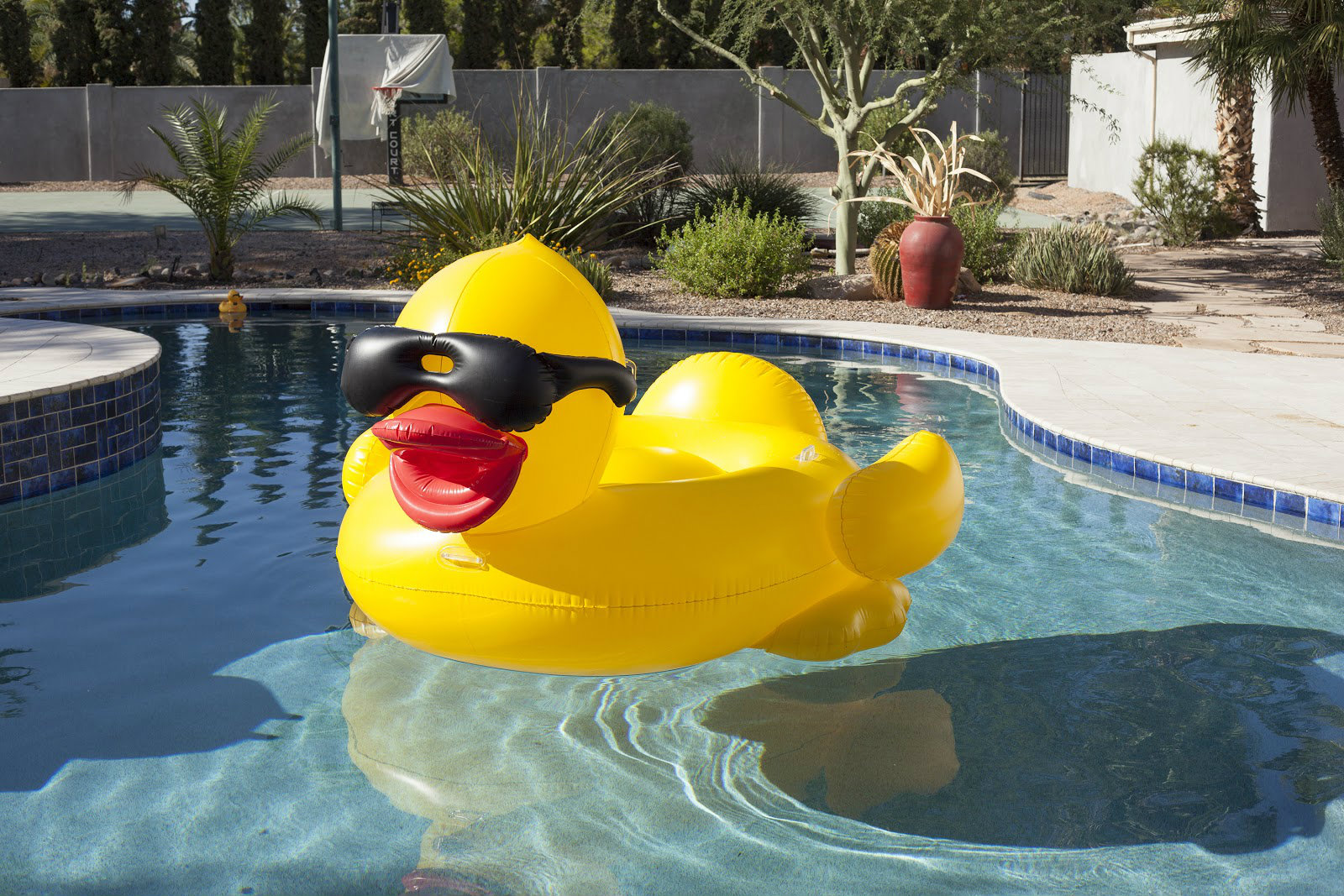 GAME’s new Derby Duck pool float is a 72-inch-long inflatable duck with a recessed seating area designed to comfortably seat multiple people. It’s made with heavy-duty vinyl and has two built-in handles on its sides for passenger stability, and a convenient cup holder to keep drinks cool.