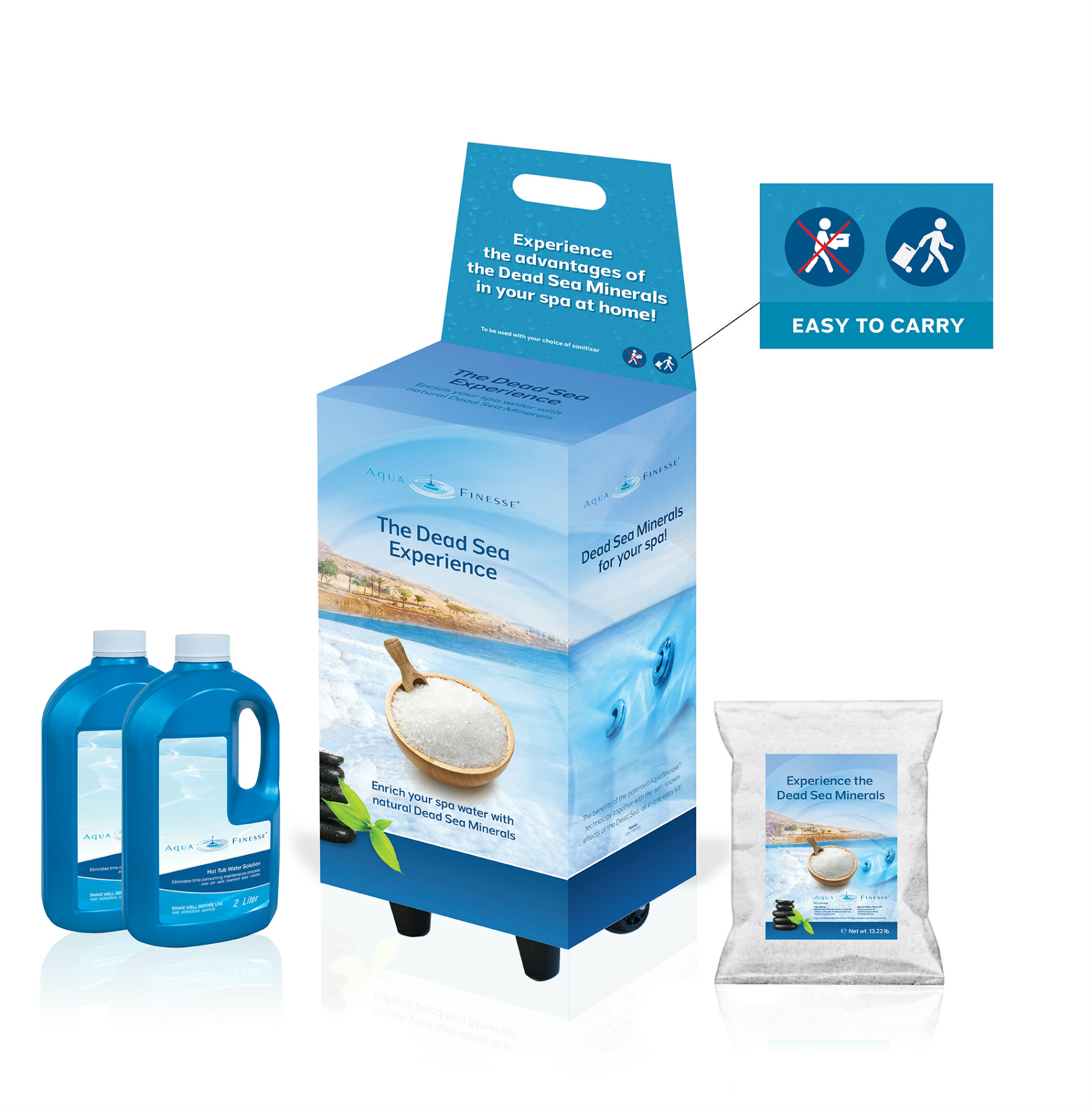 The Dead Sea Mineral Spa Water Kit has been added to the hot tub product line of AquaFinesse, LLC. It contains a specially blended mix of Dead Sea salts and minerals for use in spas to leave skin soft and hydrated, along with two 2-liter bottles of the patented AquaFinesse water care solution. The package is integrated with a handle and wheels for easy portability. The new kit will include a free sample of the also-new AquaFinesse After-Spa Lotion with Dead Sea Minerals for a limited time. For more information, call (866) 574-2782; or go to www.aquafinesse.com.