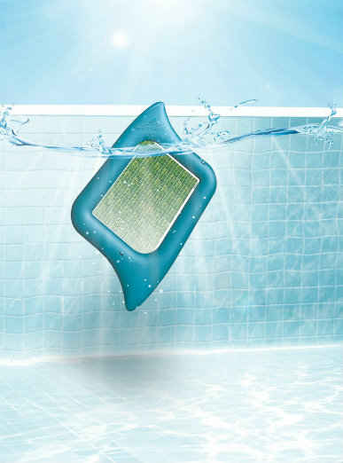 Card On Guard incorporates an all-natural, bacteria-inhibition technology made for pools and hot tubs. It is a flat, lightweight, unplugged solar cell that requires no electricity — only ambient light — to work. Enclosed in a frame and floating in the water, the solar cell replaces 50 percent of chemicals such as chlorine that are usually used, and often more, according to company officials. Using “enLIGHTen” light conversion technology, it captures, retains and re-emits light energy in the form of photons and magnifies that light energy to split some of the water molecules, which form low levels of free radicals to weaken and inhibit reproduction of bacteria and fungi.
