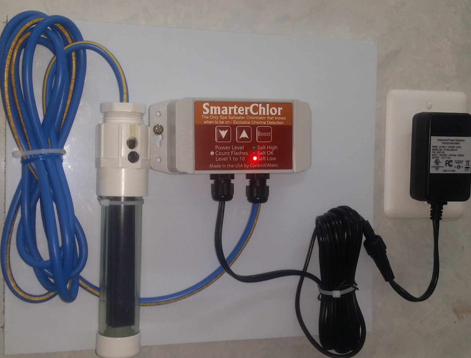 The new SmarterChlor saltwater chlorine generator is designed with chlorine control right in the cell to help prevent overchlorination of spas and eliminate guesswork. Designed with chlorine-detection technology, the device knows when to turn on and how much of the sanitizer to produce before turning off. It then activates after detecting that the chlorine level needs a boost. Everything is built into the product, so it includes no moving parts, separate buttons, control boxes or timers.