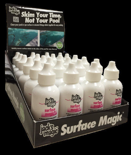 Surface Magic is a biodegradable, non-toxic and non-foaming product that gathers surface debris such as leaves, pollen and grass clippings so it can be easily removed with a leaf net. To help promote the product, Jack’s Magic now offers a point-of-purchase display with the headline, “Skim your time, not your pool.” Before and after photos show the product in action to help convince consumers of its time-saving value. The display, which can be positioned on a counter or shelf, holds 24 bottles of Surface Magic.