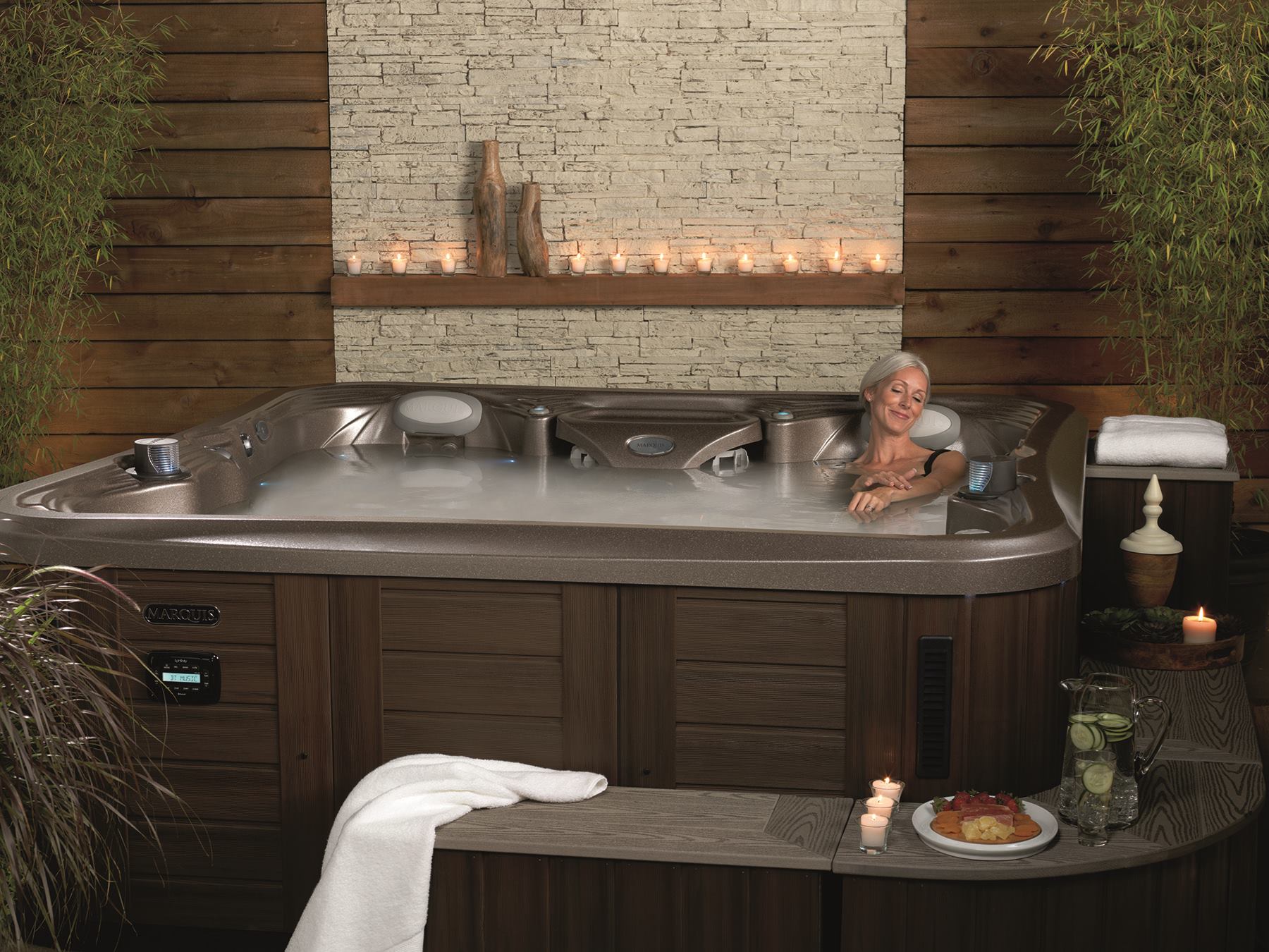 The Epic hot tub from Marquis has three High Output Therapy (HOT) zones – lumbar, shoulder and pillar – and includes a dual geyser jet system. Epic is now available with Marquis’ MicroSilk System. Contact: (800) 275-0888; www.marquisspas.com