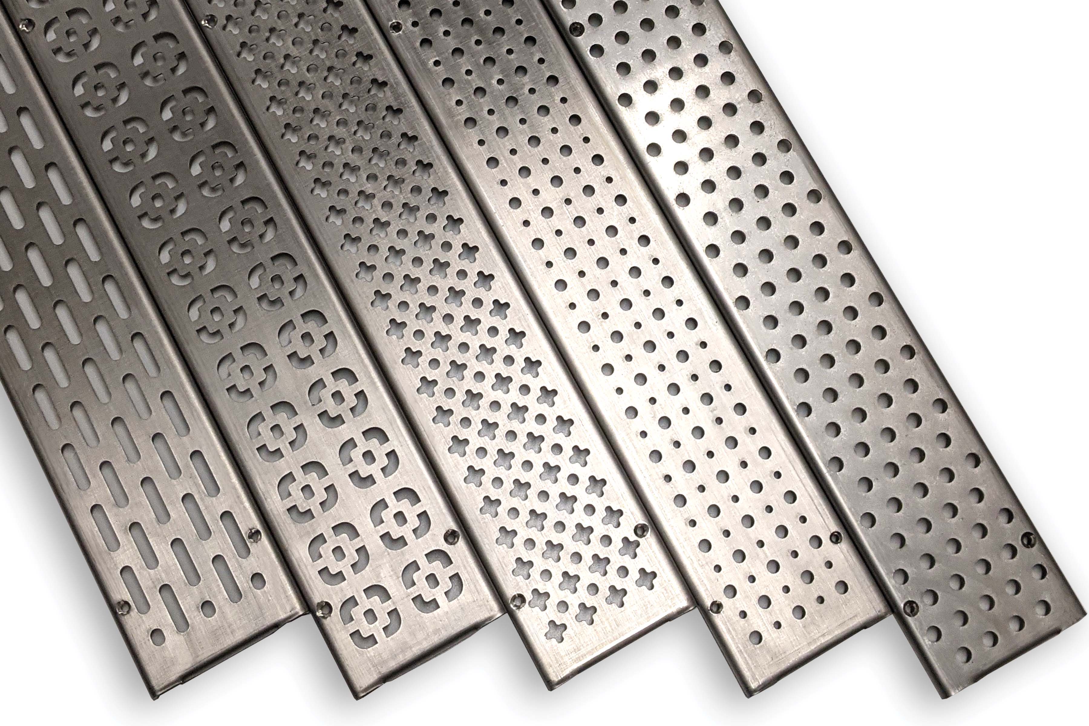 Decorative 3-Inch Stainless Steel Grates come in five decorative patterns are now available in 304 or marine grade 316 stainless steel designed to fit the NDS Mini Channel drainage system. ADA compliant and heel friendly.