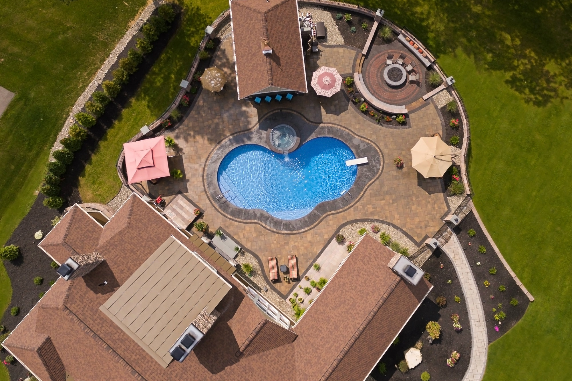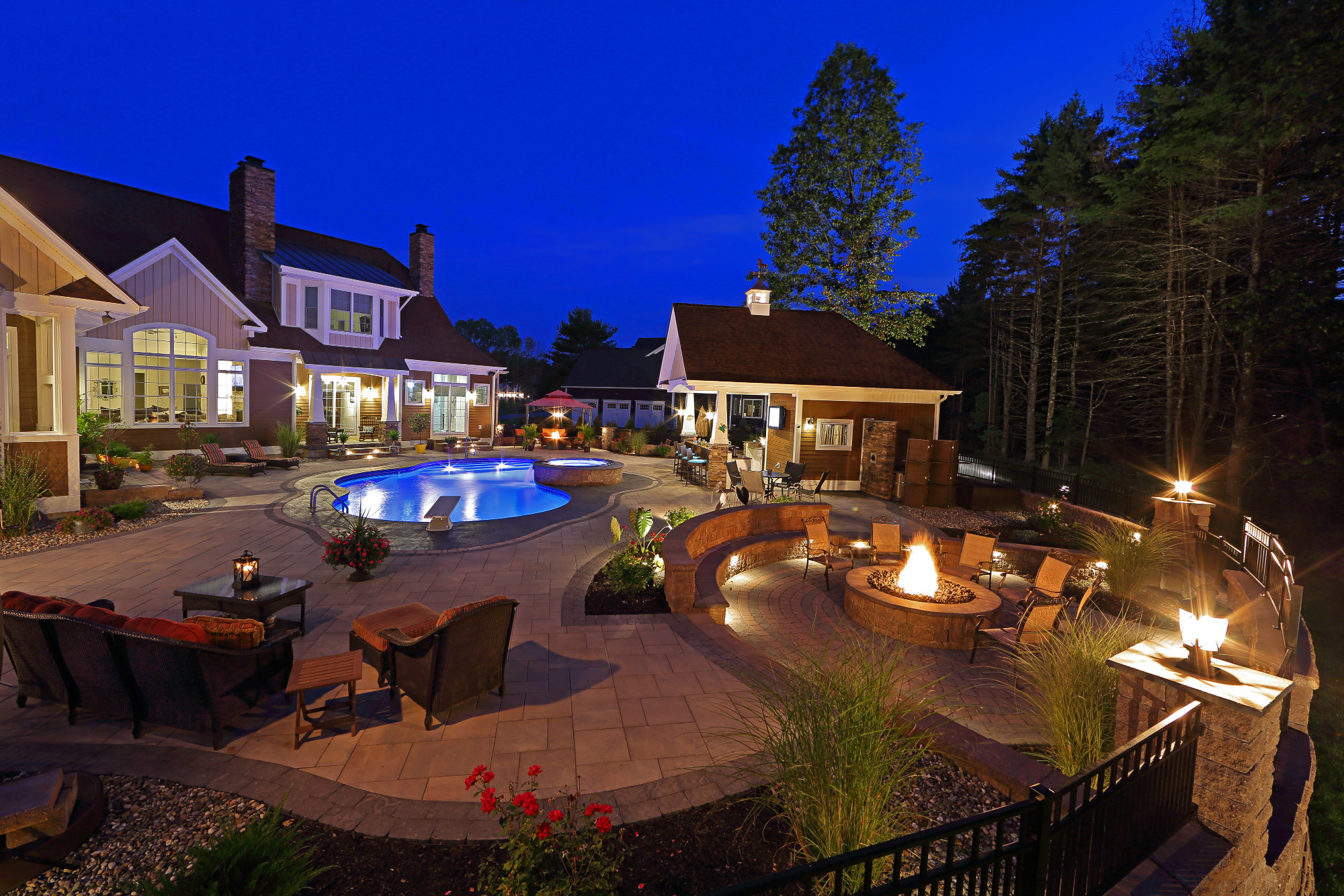 In Saratoga County, N.Y., a backyard that was little more than dirt provided Mike Giovanone, president of Concord Pools and Spas in Latham, N.Y., the blank canvas he needed to thoughtfully plan a patio packed with features. These include a pool house with a bar, fire pits and multiple areas for dining and lounging.