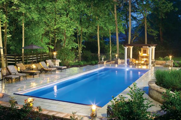 The homeowners were set on fiberglass for its durability and easy maintenance, but also wanted a level of customization not often associated with the material. Todd Emmerson delivered on their demands by trimming down the sides of a compact pool and merging it with two tanning ledges.