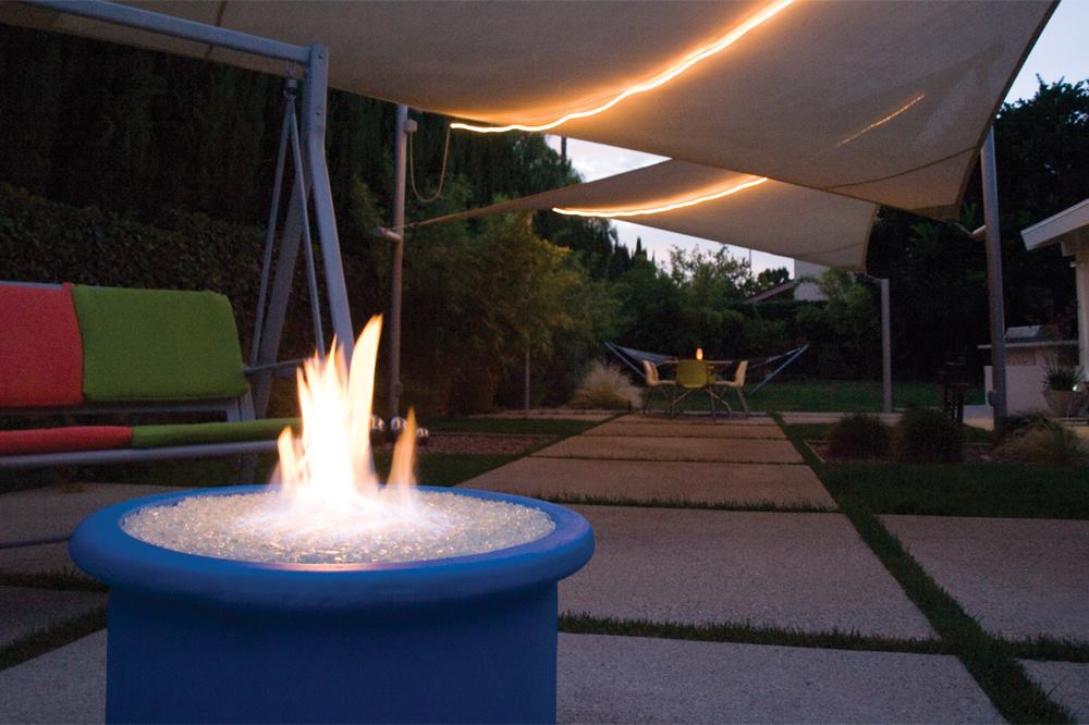 To provide relief from the sun, Miller selected a pair of large shade covers suspended on six galvanized steel support poles. The covers are made of lightweight, yet sturdy Kevlar — again mixing different textures and materials. The fabric also cuts UV rays by about 60 percent.