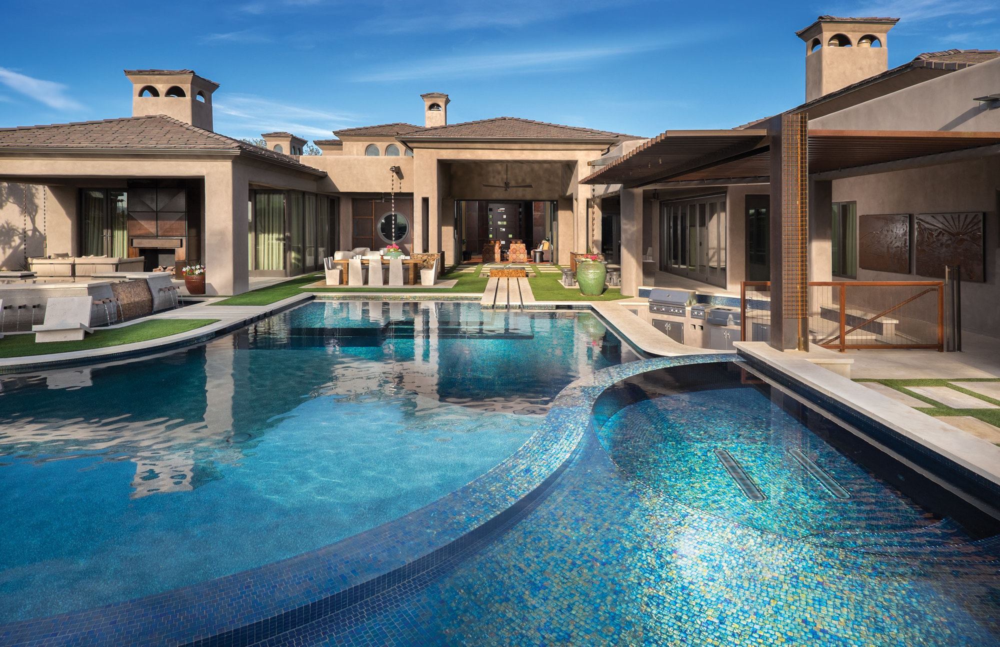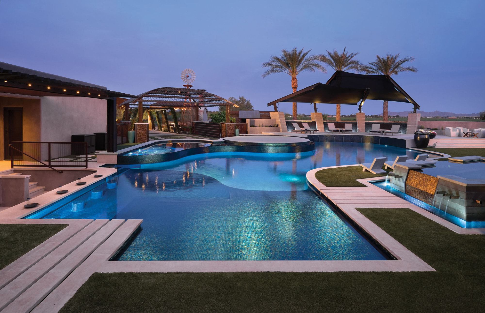 “This project is so stunning because it melds seemingly contradictory materials and lines to blend with the ‘rustic contemporary’ home,” she said. “Like the living structures, the pool features the pairing of straight and soft, radiused lines, as well as warm- and cool-toned materials.”