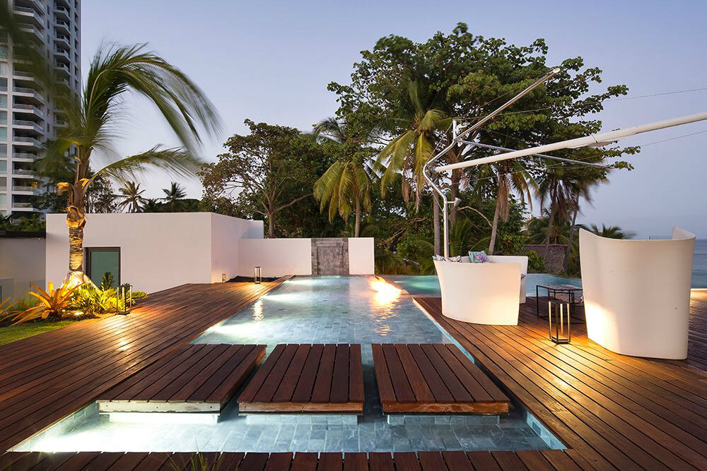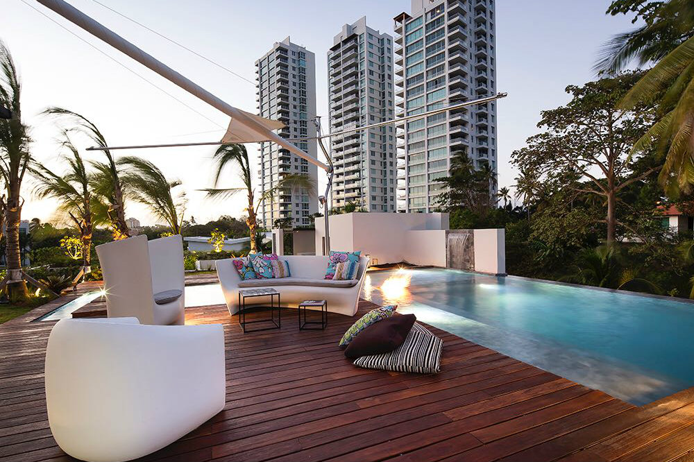 For his own second-story apartment in Panama, architect George Moreno wanted an L-shaped pool to suit the modern luxury complex he designed.